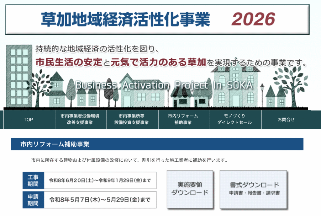 今年も「草加市 市内リフォーム補助事業」の申し込み時期がやってきました。