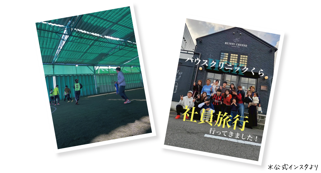 ハウスクリニックくらは、とにかく仲が良いのが自慢。フットサルやスキー、時には家族も交えて旅行も行きます。