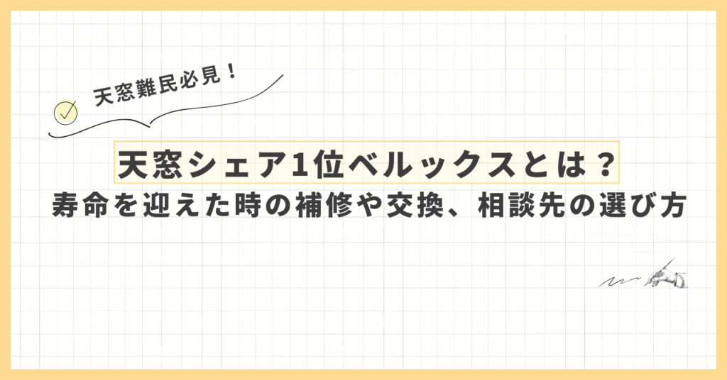 天窓シェア1位ベルックスとは?寿命を迎えた時の補修や交換、相談先の選び方